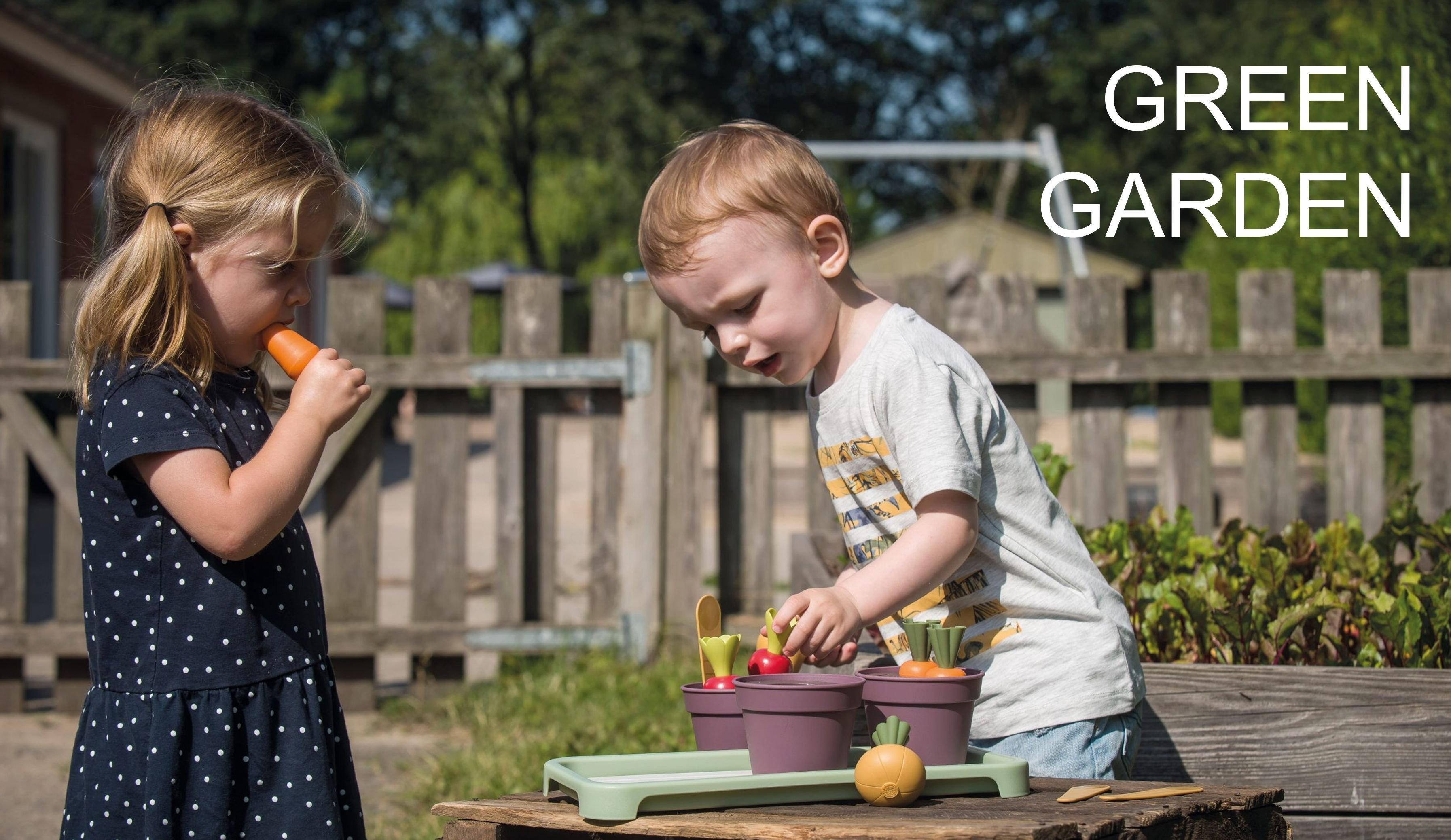 Kolekcia hračiek radu Green Garden obsahuje zábavné sady so zeleninou, jedlom na hranie a pracovným náradím na starostlivosť o vašu záhradku. Hracie sety v krásnych, jemných farbách pozývajú k zábavným chvíľkam počas grilovania či popíjania čaju s kamarátmi. Pre aktívnejších domácich majstrov ponúkame kosačky na trávu alebo záhradné kolieska.