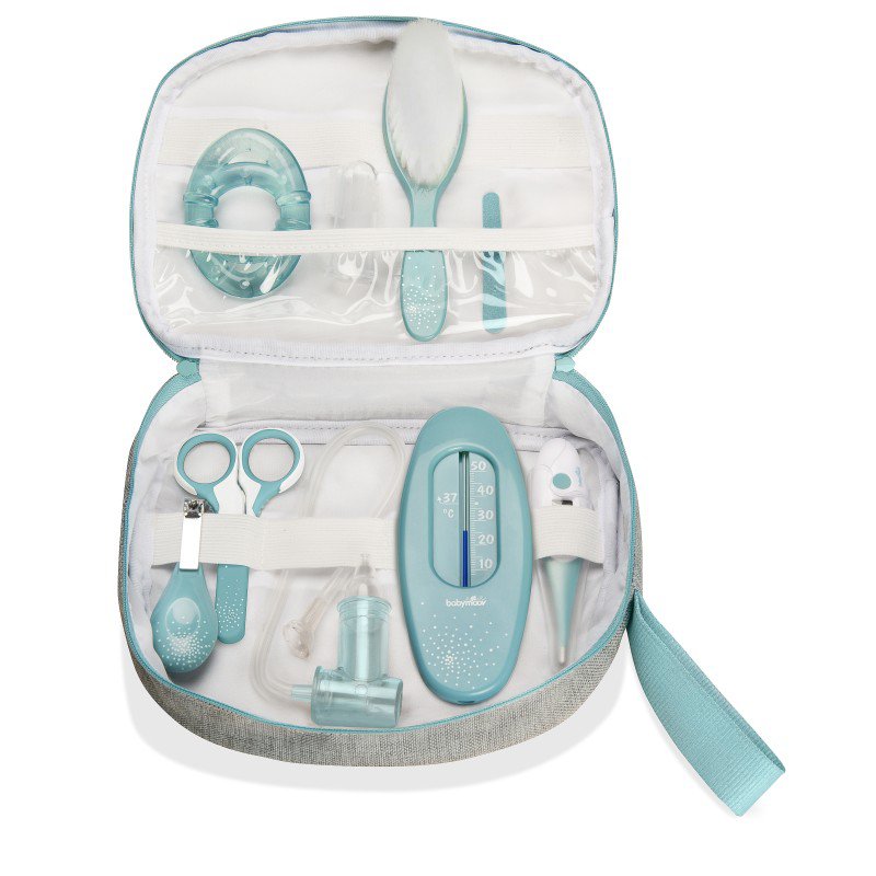 Hygienický set obsahujúci: 1 nosovú odsávačku, 1 hrebienok, 1 nožnice s guľatou špičkou a krytom, 1 pilník, 1 klieštiky na nechty, 1 silikónový kefka, 1 digitálny teplomer s ohybnou špicou a puzdrom, 1 teplomer do vody a 1 hryzátko.