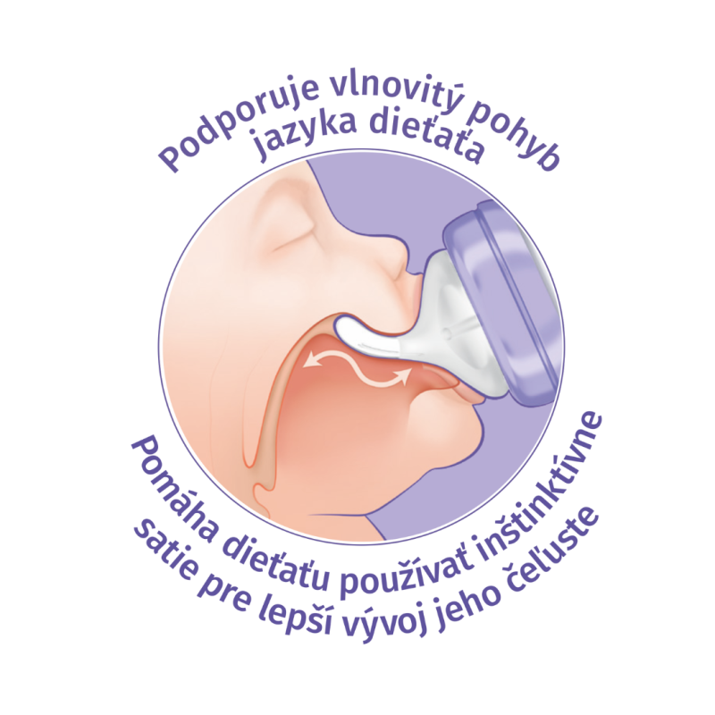 - pri kŕmení je nutný vlnový pohyb jazyka bábätka, čo podporuje prirodzený vývoj ústnej dutiny