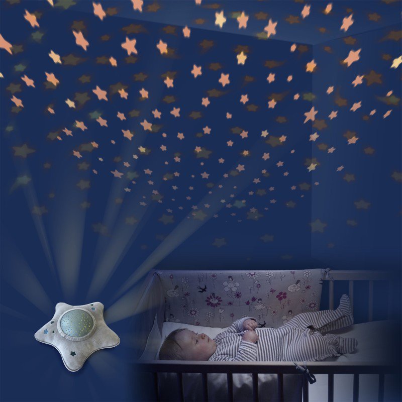 funkcia "senzor plače" - ak začne dieťa plakať (po dobu viac ako 5 sekúnd), projektor sa znovu zapne a začne vydávať ukľudňujúce tlkot srdca s jemnými projekciami