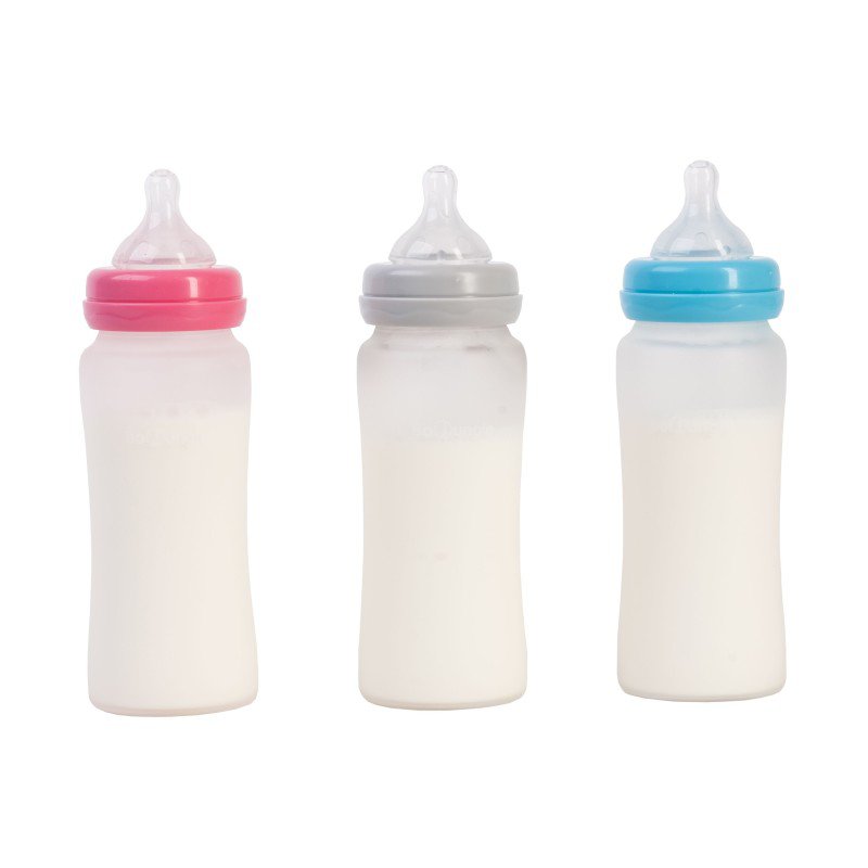 - fľaša sa len tak nerozbije, a hlavne, ak by neúmyselne spadla a praskla, sklo sa vďaka silikónovému povrchu nepoškodí - nerozpadne sa na malej časti