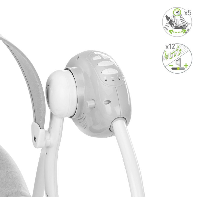 - ponúka 5 rýchlostí hojdania s možnosťou nastavenia času na 8, 15 a 30 minút