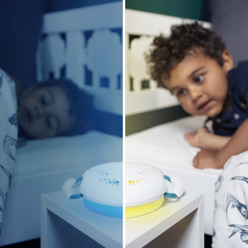 Nočná lampička Dreamy môže prehrávať až 6 uspávaniek*, melódie a biely šum. Niet pochýb o tom, že dieťa pri ich počúvaní rýchlo zaspí.