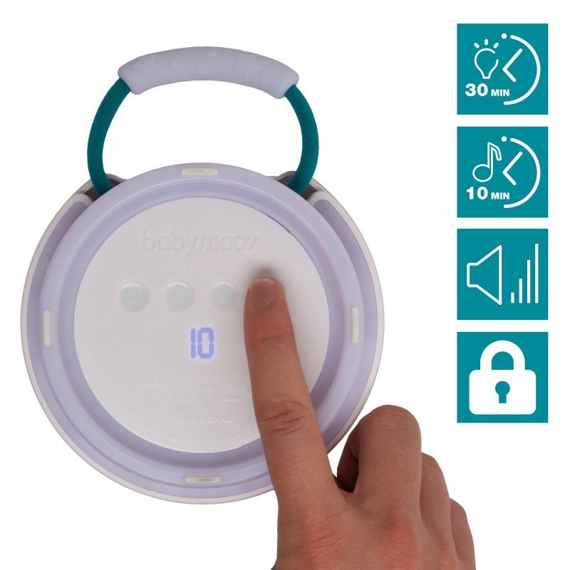 - 2 časovača: 10 minút pre uspávanky a 30 minút pre nočné osvetlenie