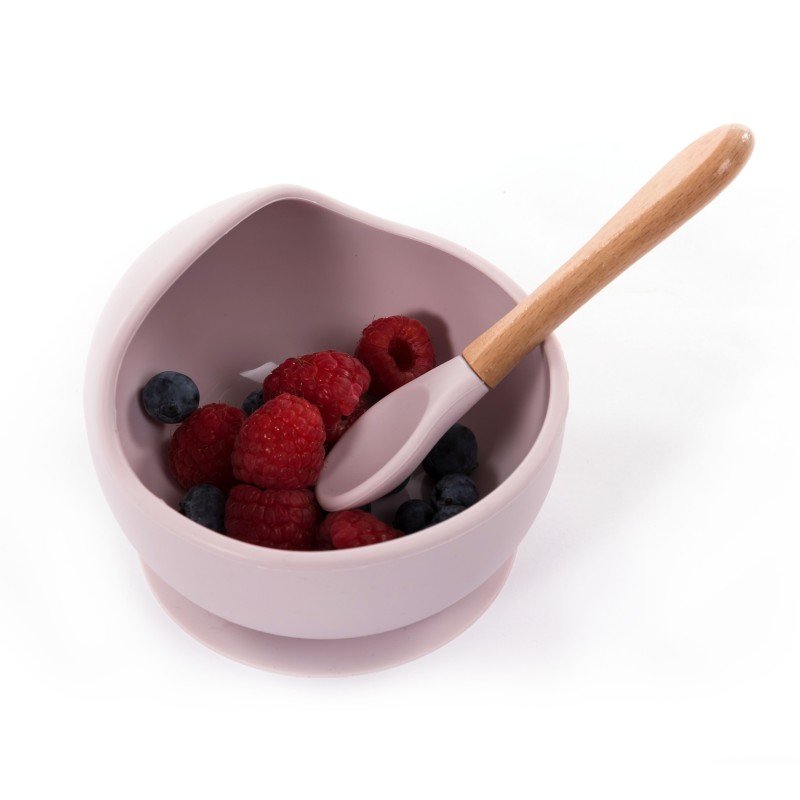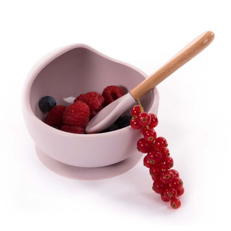 Silikónová miska s prísavkou a lyžičkou Pastel Pink