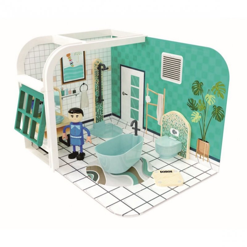 Tento Jouéco hrací set - kúpeľňa - bol navrhnutý v súlade s najvyššími štandardmi kvality. Ponúka neobvyklú kombináciu vysoko kvalitného dreva, plastu a lepenky.