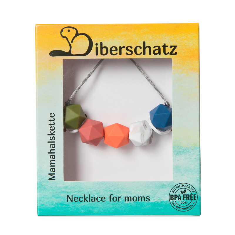 Pred každým použitím kúsacie korále starostlivo skontrolujte. Pri akýchkoľvek známkach poškodenia ich vyhoďte a nahraďte novým. Nikdy nenechávajte svoje dieťa s týmto výrobkom bez dozoru. Kúsacie korále sú určené na nosenie rodičom, nie dieťaťom, mohlo by dôjsť k uškrteniu. Kúsacie korále nie sú hračka. Čistenie: Pred prvým použitím a po každom ďalšom použití náhrdelník umývajte teplou mydlovou vodou, opláchnite a dôkladne osušte. Nevyvárajte ho, nedávajte ho do mikrovlnnej rúry, sterilizátora ani do umývačky riadu. Udržujte kúsacie korále vždy čisté. Uchovávajte výrobok na čistom mieste. Uchovajte si tieto informácie pre budúcu potrebu. V súlade s európskou normou EN71. Číslo výrobku nájdete na obale.