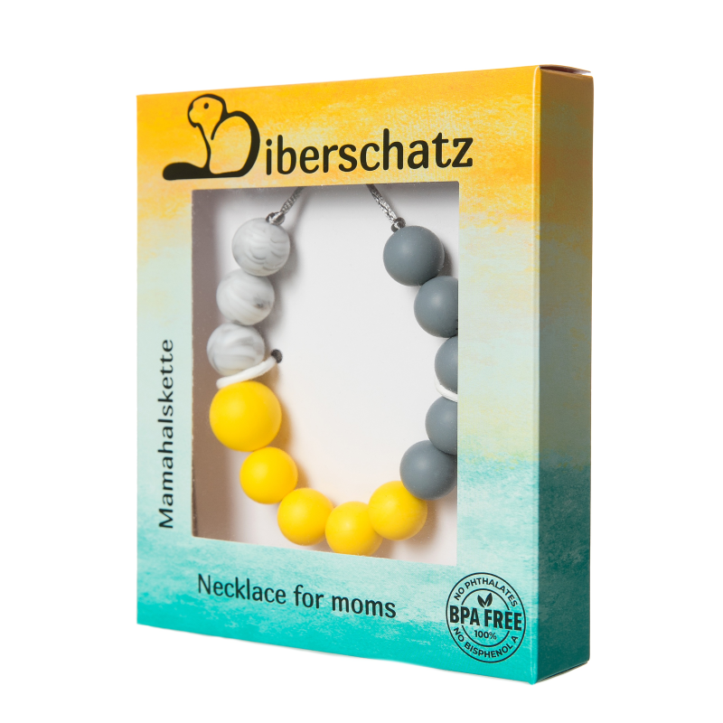 Pred každým použitím kúsacie korále starostlivo skontrolujte. Pri akýchkoľvek známkach poškodenia ich vyhoďte a nahraďte novým. Nikdy nenechávajte svoje dieťa s týmto výrobkom bez dozoru. Kúsacie korále sú určené na nosenie rodičom, nie dieťaťom, mohlo by dôjsť k uškrteniu. Kúsacie korále nie sú hračka. Čistenie: Pred prvým použitím a po každom ďalšom použití náhrdelník umývajte teplou mydlovou vodou, opláchnite a dôkladne osušte. Nevyvárajte ho, nedávajte ho do mikrovlnnej rúry, sterilizátora ani do umývačky riadu. Udržujte kúsacie korále vždy čisté. Uchovávajte výrobok na čistom mieste. Uchovajte si tieto informácie pre budúcu potrebu. V súlade s európskou normou EN71. Číslo výrobku nájdete na obale.