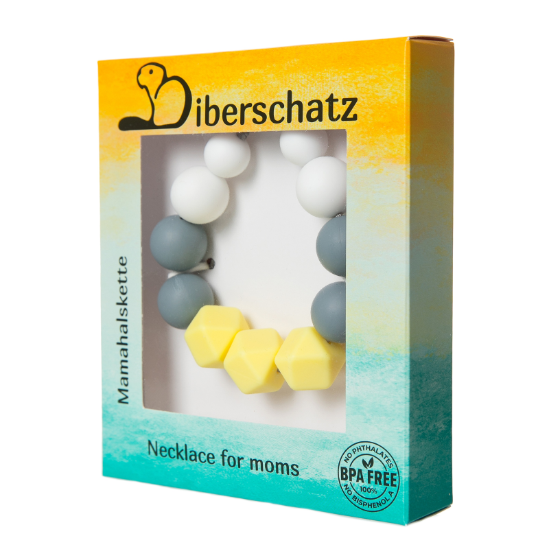 Pred každým použitím kúsacie korále starostlivo skontrolujte. Pri akýchkoľvek známkach poškodenia ich vyhoďte a nahraďte novým. Nikdy nenechávajte svoje dieťa s týmto výrobkom bez dozoru. Kúsacie korále sú určené na nosenie rodičom, nie dieťaťom, mohlo by dôjsť k uškrteniu. Kúsacie korále nie sú hračka. Čistenie: Pred prvým použitím a po každom ďalšom použití náhrdelník umývajte teplou mydlovou vodou, opláchnite a dôkladne osušte. Nevyvárajte ho, nedávajte ho do mikrovlnnej rúry, sterilizátora ani do umývačky riadu. Udržujte kúsacie korále vždy čisté. Uchovávajte výrobok na čistom mieste. Uchovajte si tieto informácie pre budúcu potrebu. V súlade s európskou normou EN71. Číslo výrobku nájdete na obale.