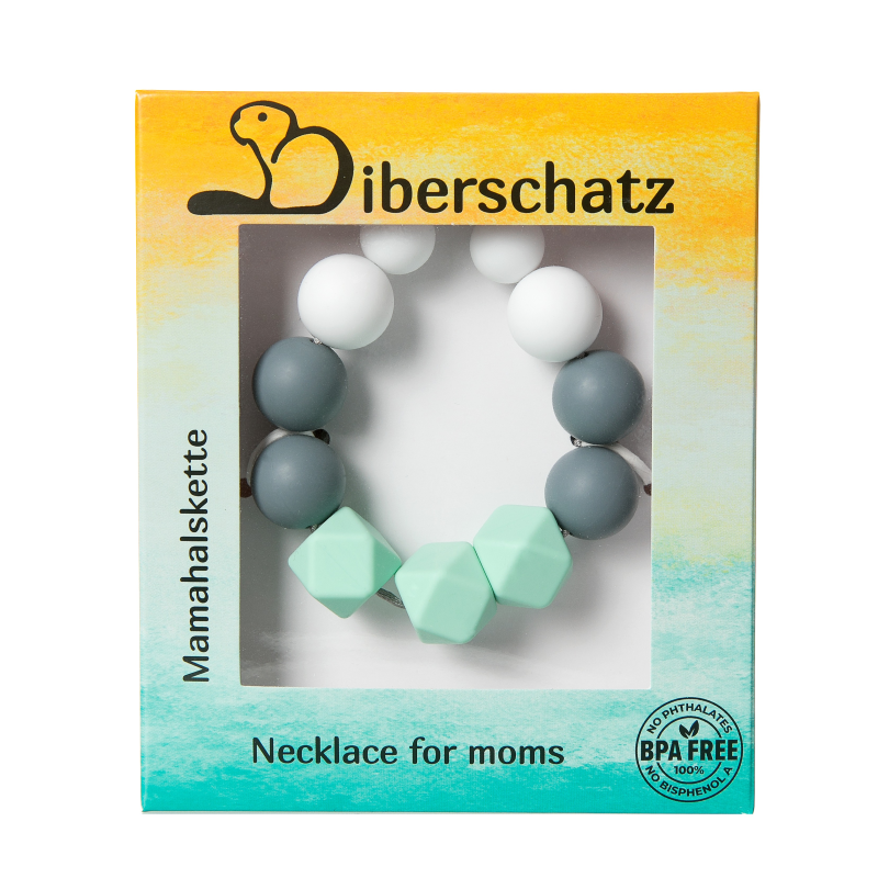 Pred každým použitím kúsacie korále starostlivo skontrolujte. Pri akýchkoľvek známkach poškodenia ich vyhoďte a nahraďte novým. Nikdy nenechávajte svoje dieťa s týmto výrobkom bez dozoru. Kúsacie korále sú určené na nosenie rodičom, nie dieťaťom, mohlo by dôjsť k uškrteniu. Kúsacie korále nie sú hračka. Čistenie: Pred prvým použitím a po každom ďalšom použití náhrdelník umývajte teplou mydlovou vodou, opláchnite a dôkladne osušte. Nevyvárajte ho, nedávajte ho do mikrovlnnej rúry, sterilizátora ani do umývačky riadu. Udržujte kúsacie korále vždy čisté. Uchovávajte výrobok na čistom mieste. Uchovajte si tieto informácie pre budúcu potrebu. V súlade s európskou normou EN71. Číslo výrobku nájdete na obale.
