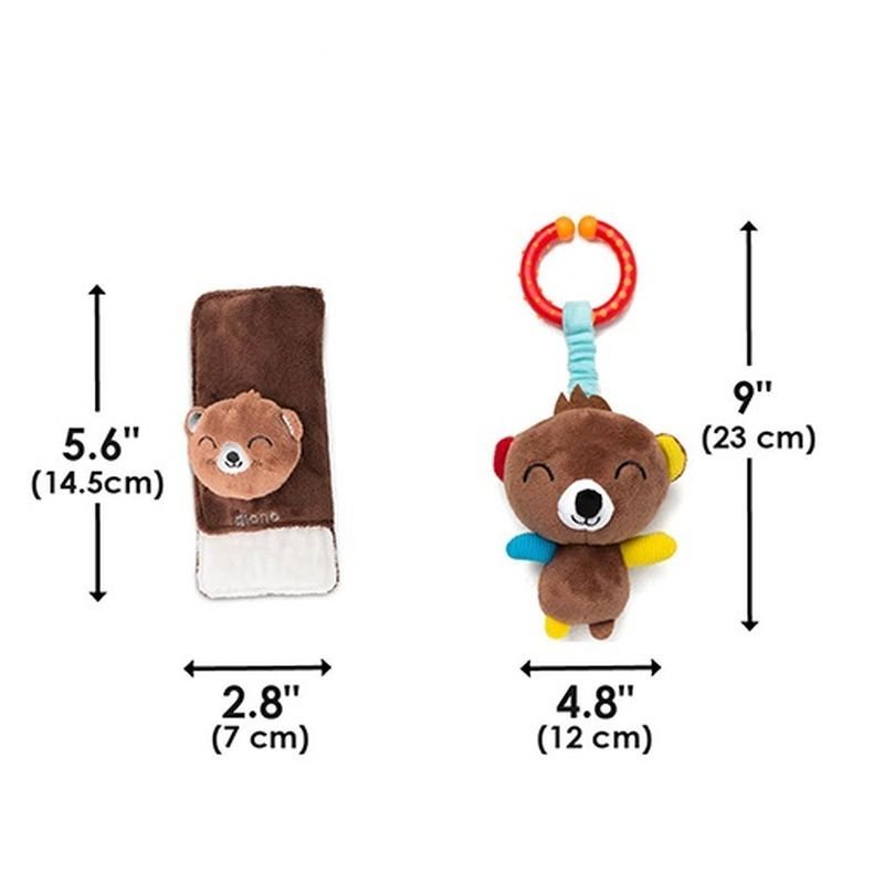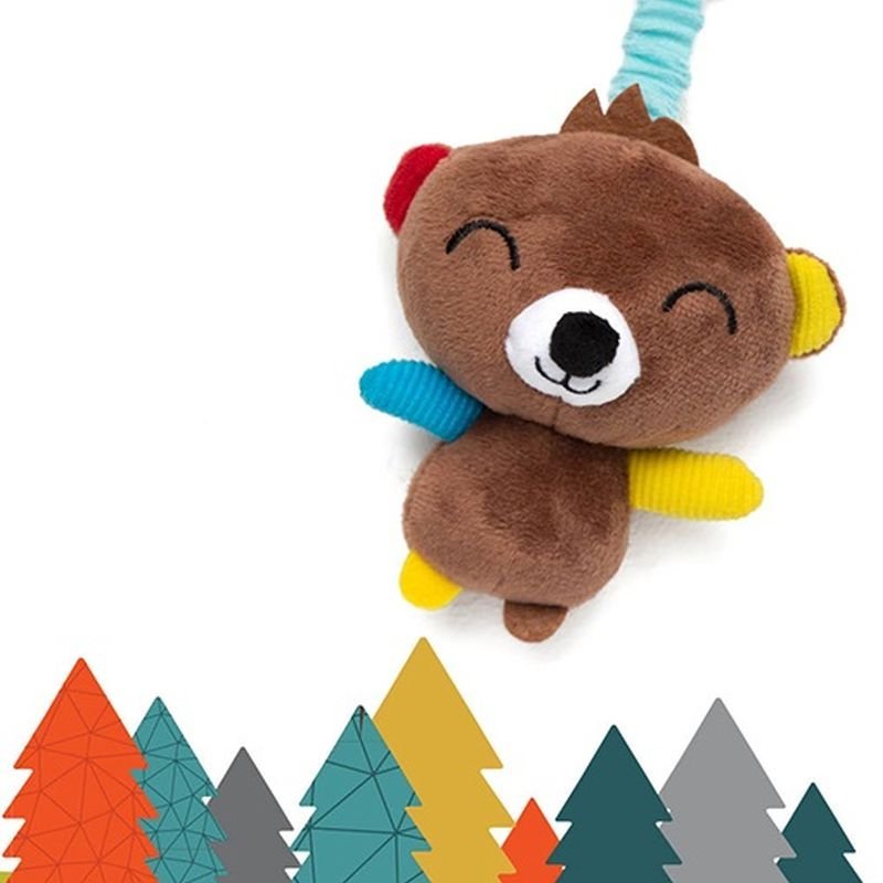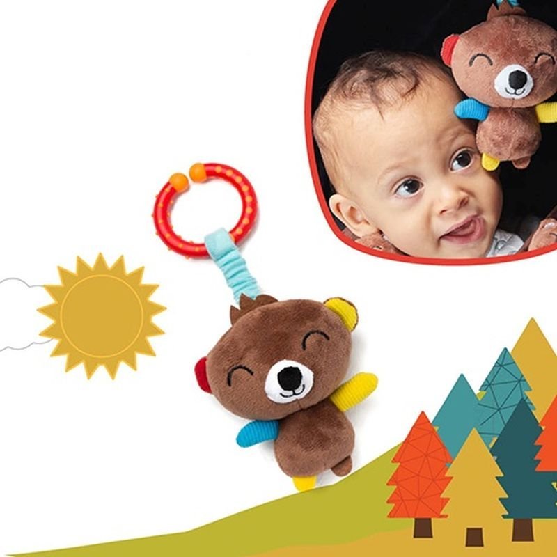 - hračka je vyrobená z rôznych materiálov a textúr, po stlačení píska, možno ju pomocou plastového krúžku upevniť na kočík či autosedačku