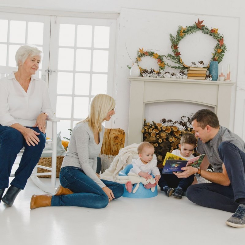 Detské sedátko umožňujúca dieťaťu sedieť samostatne na podlahe a vďaka tomu má mamička voľné obe ruky - napr. na hranie, kŕmenie a pod.