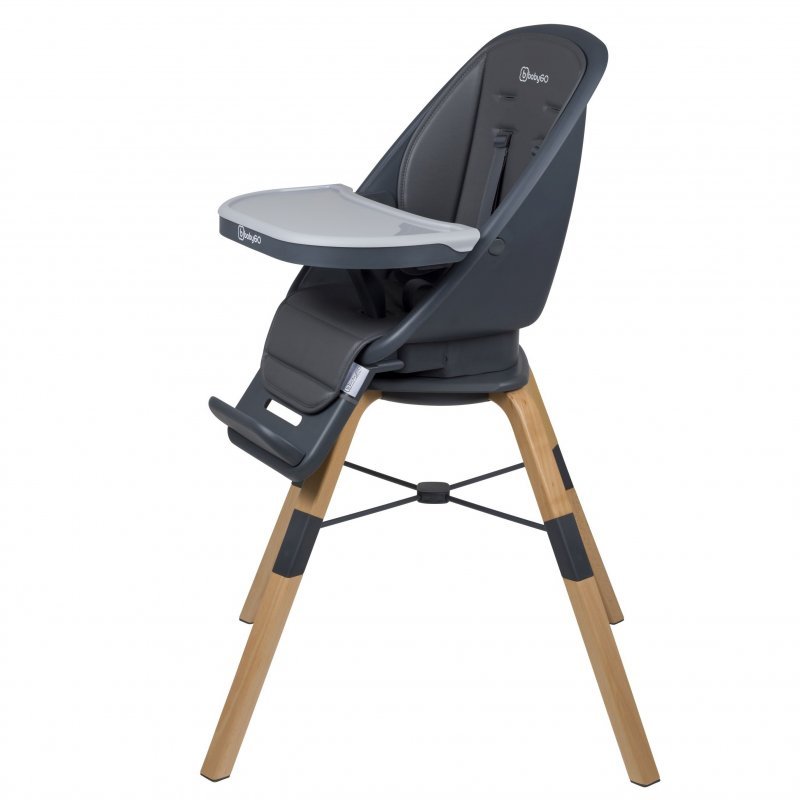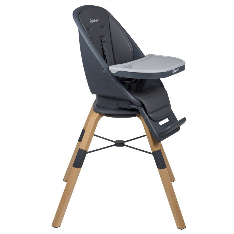 Štýlová vysoká jedálenská stolička otočná o 360 °! Umožňuje dieťaťu zúčastniť sa jedla spoločne s rodičmi pri jednom stole. Komfortné sedadlo je jemne polstrované a 5-bodový pás s nastaviteľnou veľkosťou ponúka maximálnu bezpečnosť pre Vášho drobčeka.