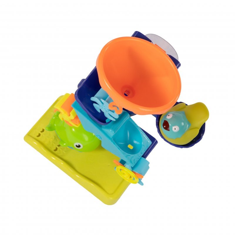 Plastová hračka, vďaka ktorej zažite Vaše dieťatko veľa zábavy pri kúpaní. Stačí len nabrať vodu, vyliať ju do horného lievika a potom už len sledovať, ako voda začne točiť kolieskami ... a zábava začína!
