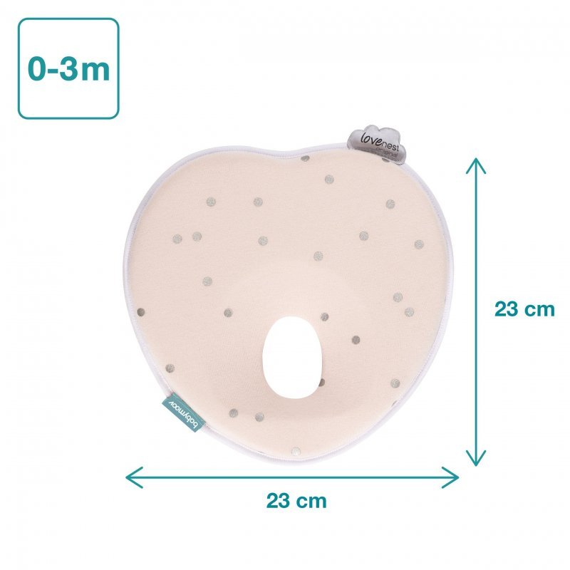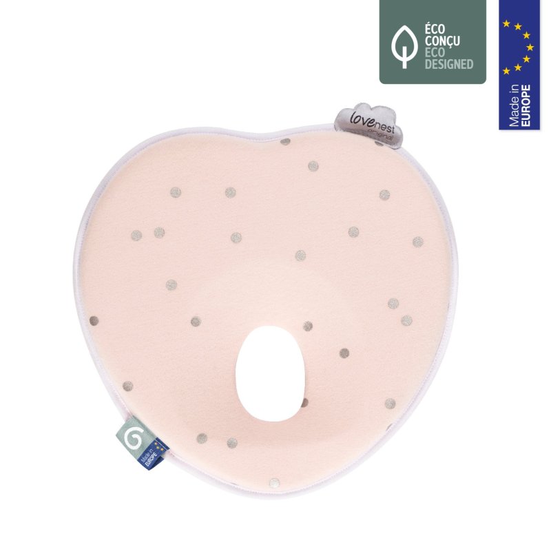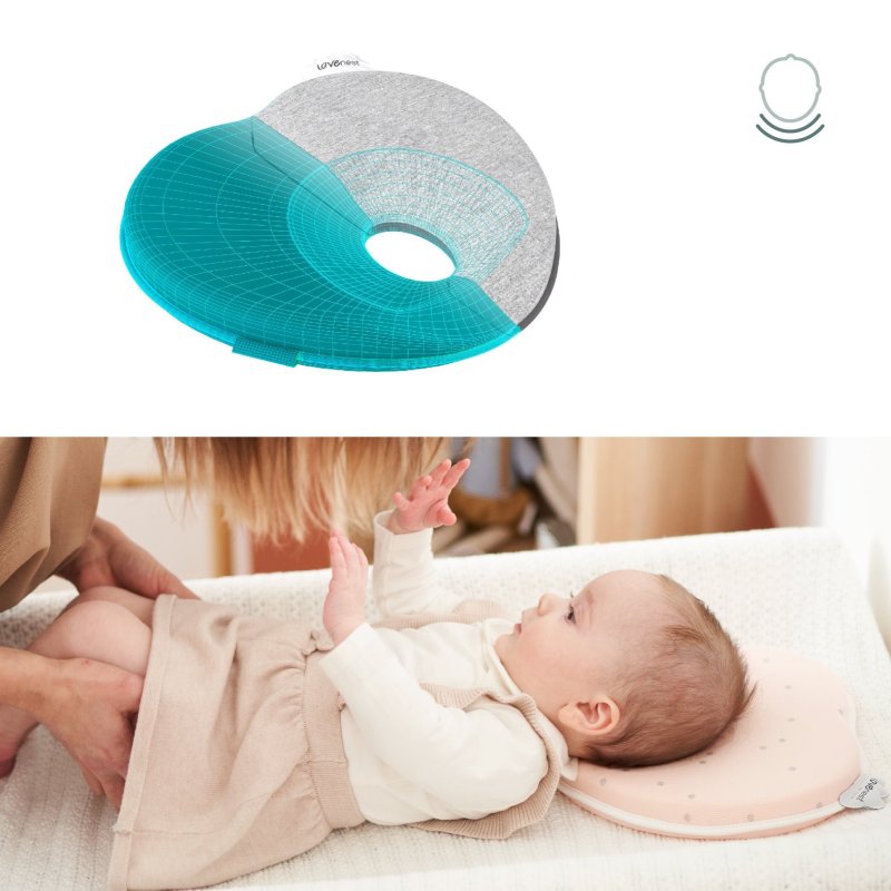 Podhlavníček LoveNest bol patentovaný a je vyrábaný v Portugalsku. Je špeciálne tvarovaný tak, aby vyhovoval tvaru lebky dojčatá a zaisťoval rovnomerné rozloženie tlaku po hlavičke a zároveň umožňoval úplnú voľnosť pohybu.