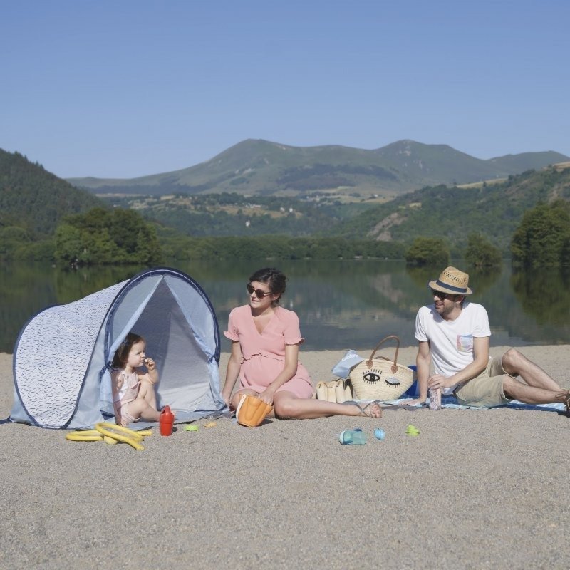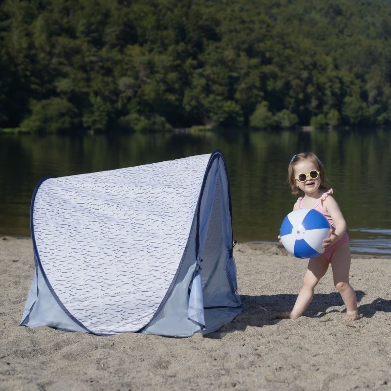Stan sa ľahko zostavuje a skladá vďaka pop-up systému, je dostatočne veľký aj pre 2 deti. Má veľký otvor vpredu a dve ventilačné okienka vzadu pre optimálnu cirkuláciu vzduchu. Sieťkou v prednej časti možno celý stan uzavrieť, čím vytvoríte ochranu pred hmyzom počas leta. Dno stanu je nepriepustné. Tento plážový stan je dodávaný so 4 kolíky pre upevnenie. Stan je veľmi ľahký (<1 kg) a ľahko sa prenáša v taške s pútkami, ktorá je súčasťou.