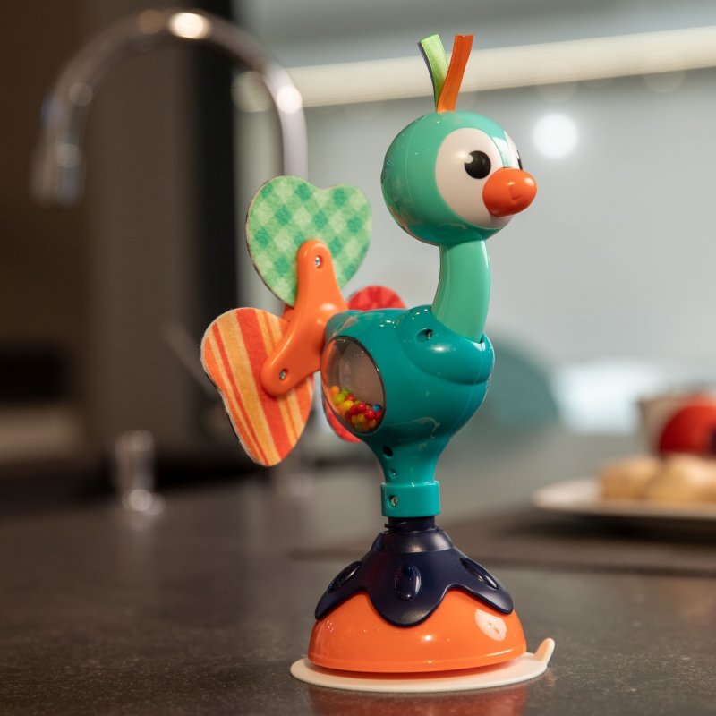 Plastová hračka s prísavkou, pomocou ktorej sa pripevnia k jedálenskému pultíku, a tým sa zabráni tomu, aby ju Vaše dieťatko hádzalo na zem. Zábavné a zaujímavé funkcie nadlho zabaví Vaše dieťa a povzbudzujú ich, aby pri kŕmení sedeli v pokoji.