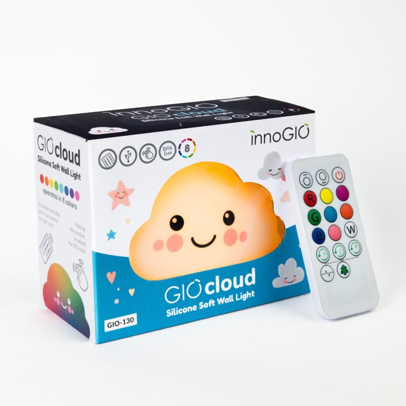 GIOCloud je roztomilá silikónová LED lampička v tvare obláčiku, ktorú bude vaše dieťatko okamžite milovať. Zaistí príjemné a útulné osvetlenie v detskej izbičke. Možno ju zavesiť na stenu a ovládať pohodlne aj pomocou diaľkového ovládania.