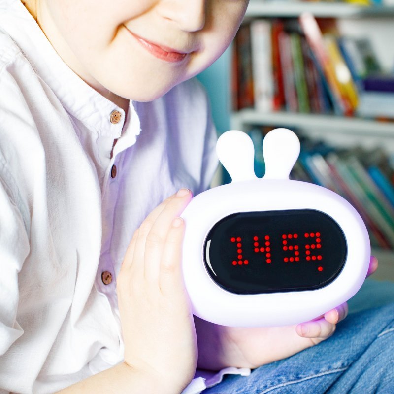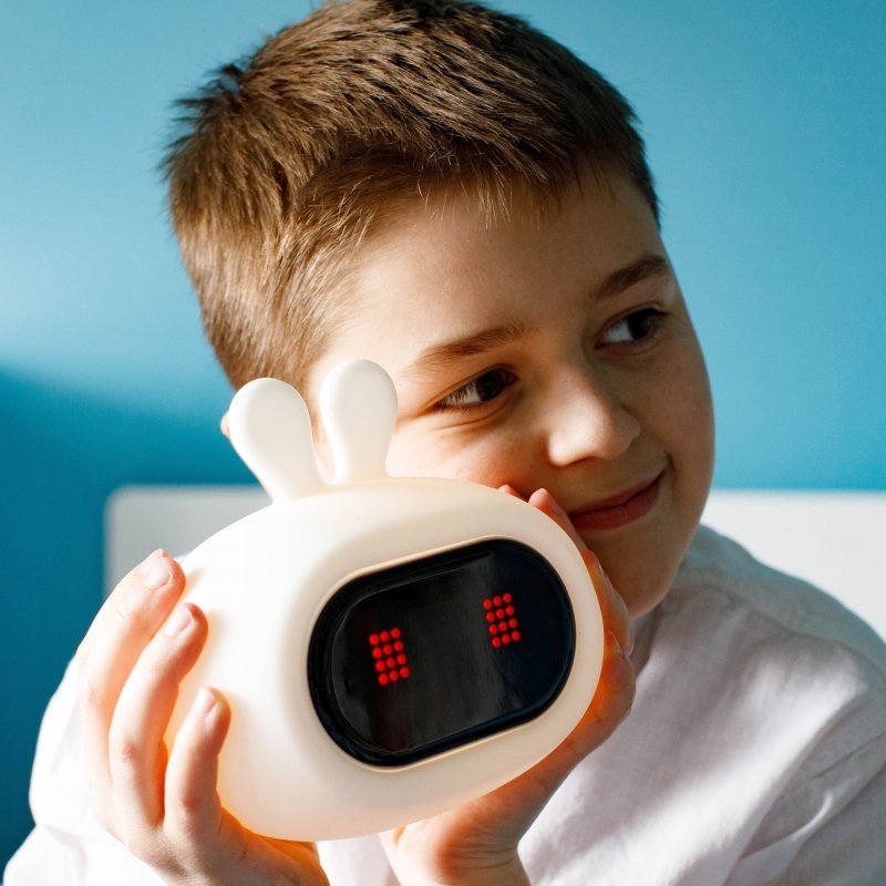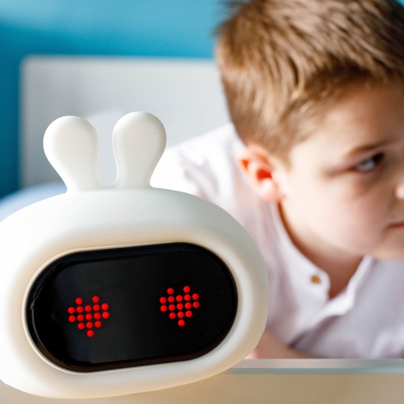 Začnite každý nový deň s úsmevom! Lampička GIO Rabbit má zabudovaný budík, ktorý prebudí aj toho najväčšieho spáča! Králiček reaguje na dotyk ruky, mení farby a zobrazuje vtipné tváričky spolu so sprievodnými zvuky.