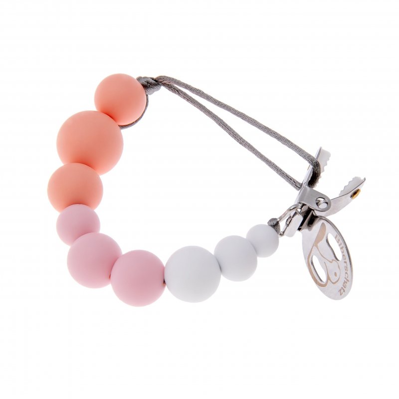 - vyrobený zo 100% potravinárskeho silikónu, saténové šnúrky a kovového klipu