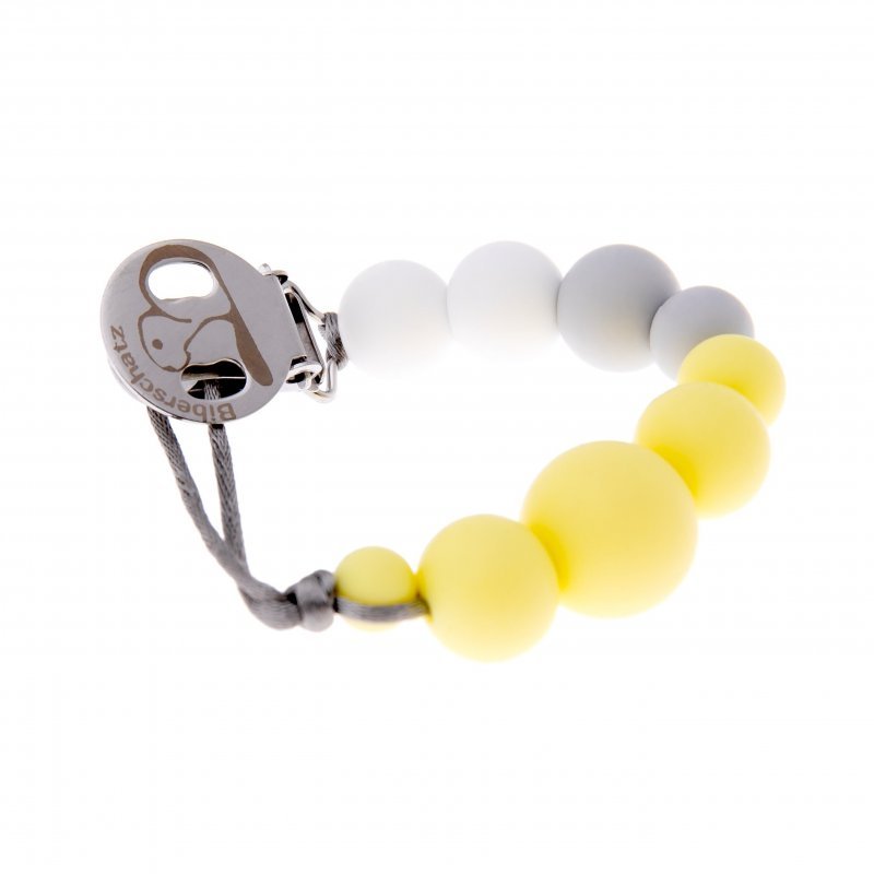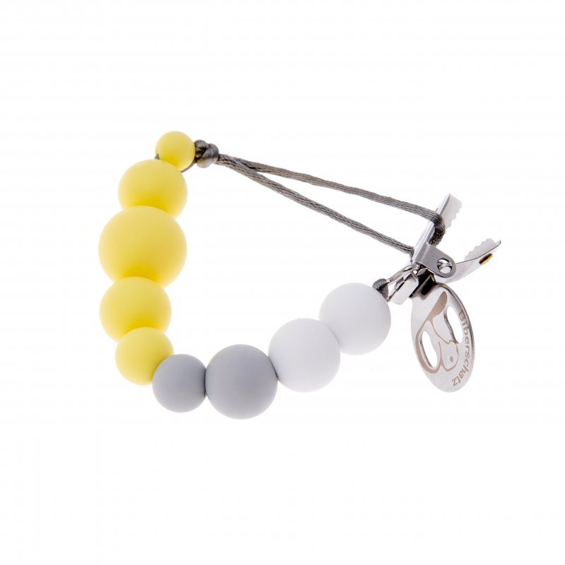 Krásny, farebný klip na cumlík, ktorý udržuje cumlík v blízkosti vášho dieťaťa a zároveň zabraňuje jeho upadnutie. Rôzne farby a veľkosti korálkov zaisťujú dobré rozptýlenie.