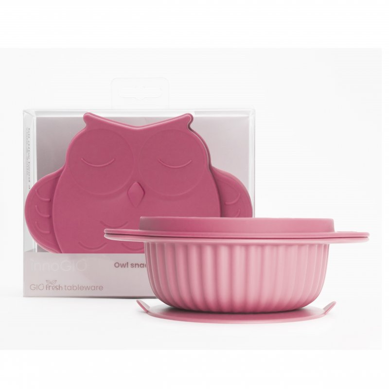 Silikónová miska s viečkom GIOfresh Owl Pink