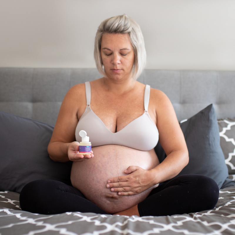 Jedinečná zmes prírodných ingrediencií vrátane mandľového, jojobového oleja a oleja z pšeničných klíčkov dodáva pokožke jemnosť a pružnosť. Olej bohatý na vitamín E vyživuje a uvoľňuje tkanivo hrádze a pomáha ho pripraviť na pôrod.