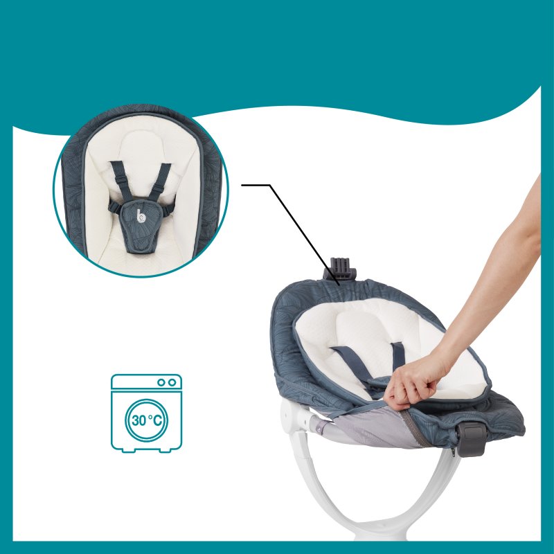 - materiál poťahu hojdačky: 100% polyester, možno prať na 30°C, odporúčame gélové pracie prostriedky
