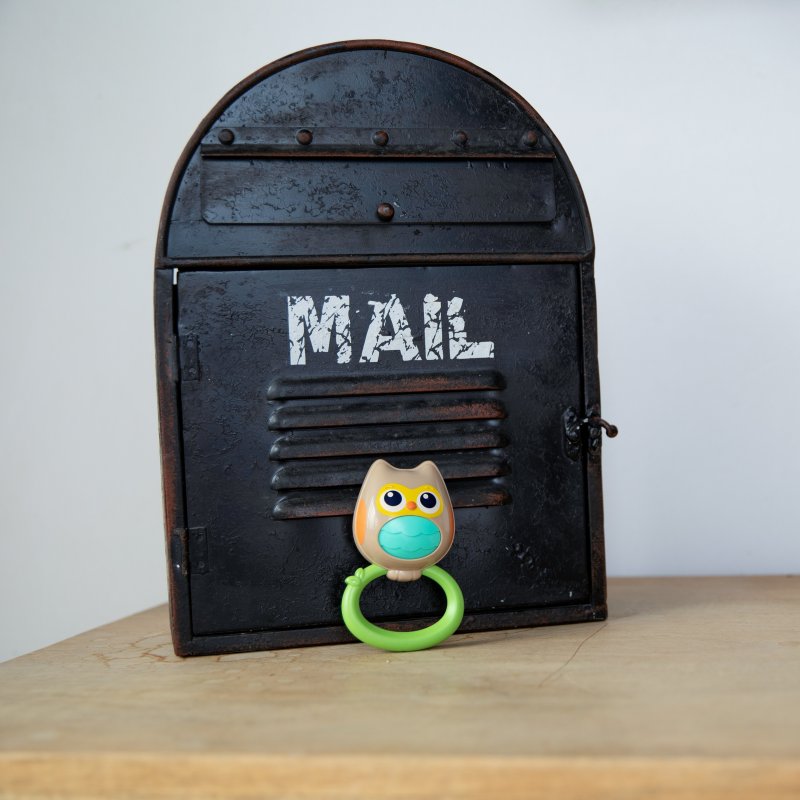 Ľahká, farebná hrkálka v podobe zvieratka.