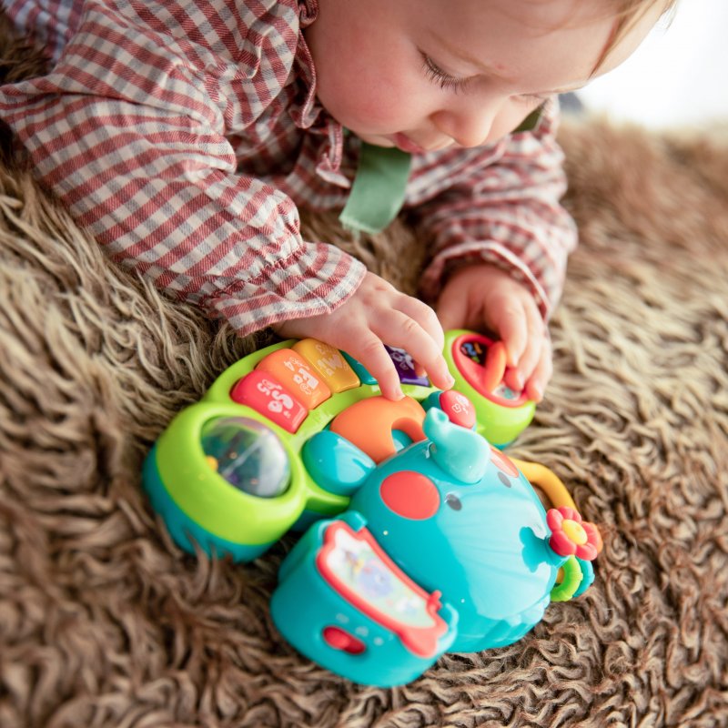 - mnoho interaktívnych a pohyblivých častí napomáhajúcich k rozvoju vizuálnych, sluchových a hmatových zmyslov