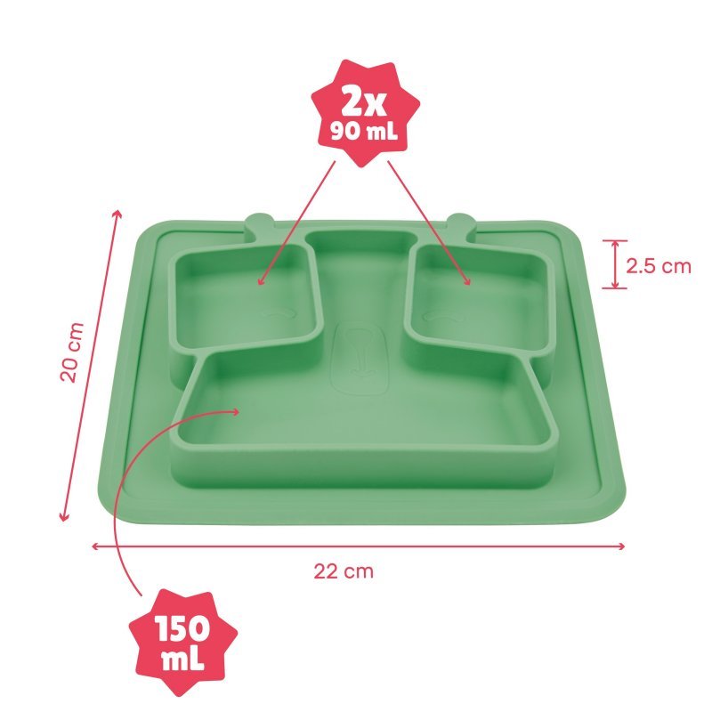 - 3 priehradky napomáhajú dieťatku učiť sa rozoznávať chuti a nemiešať jedlo