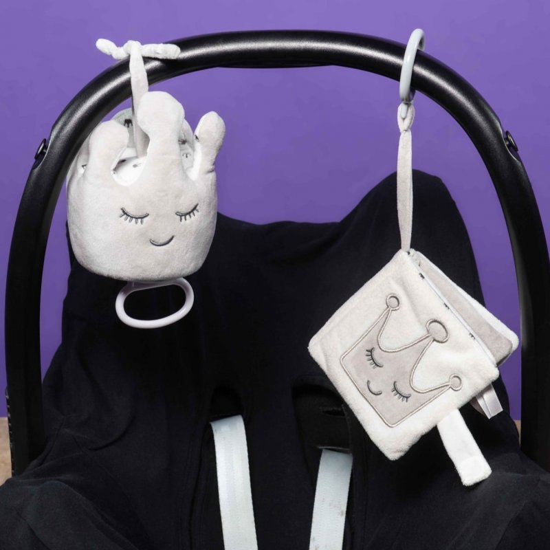 - pomocou pútka ju možno zavesiť nad postieľku, autosedačku, kočík - mimo dosahu detských ručičiek (neslúži ako hračka)