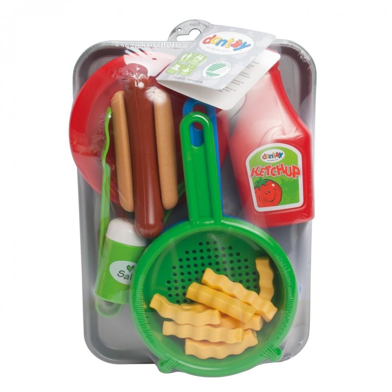 - pestrofarebná plastová sada riadu + hotdog s táckou