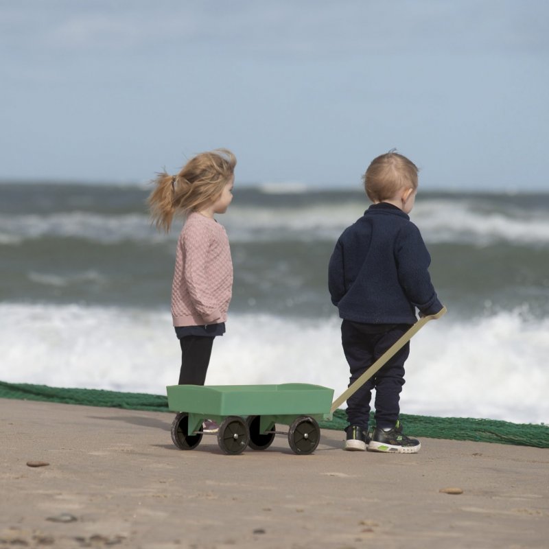 Skvelý ťahací vozík s priestorom na množstvo piesku a iných materiálov, ktoré je potrebné prevážať. Vytvára pre dieťa skvelé príležitosti na hru a fyzickú aktivitu. Hračka je vyrobená z recyklovaného rybárskeho a námorného vybavenia (zo sietí a lán, ktoré by inak skončili na dne oceánu).