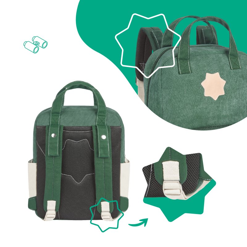 Batoh Safari je z novej kolekcie tašiek v štýle „Matchy-Matchy“, ktorá spojí celú rodinu. Špliechanie cez kaluže, stavanie domčekov na stromoch a behanie za motýľmi: na každom rohu čaká toľko dobrodružstiev! Nech už sa vydáte kamkoľvek na svoje cesty, tieto štýlové batohy sú navrhnuté s ohľadom na celú rodinu: 2 farby a 3 veľkosti pre rodičov aj deti.