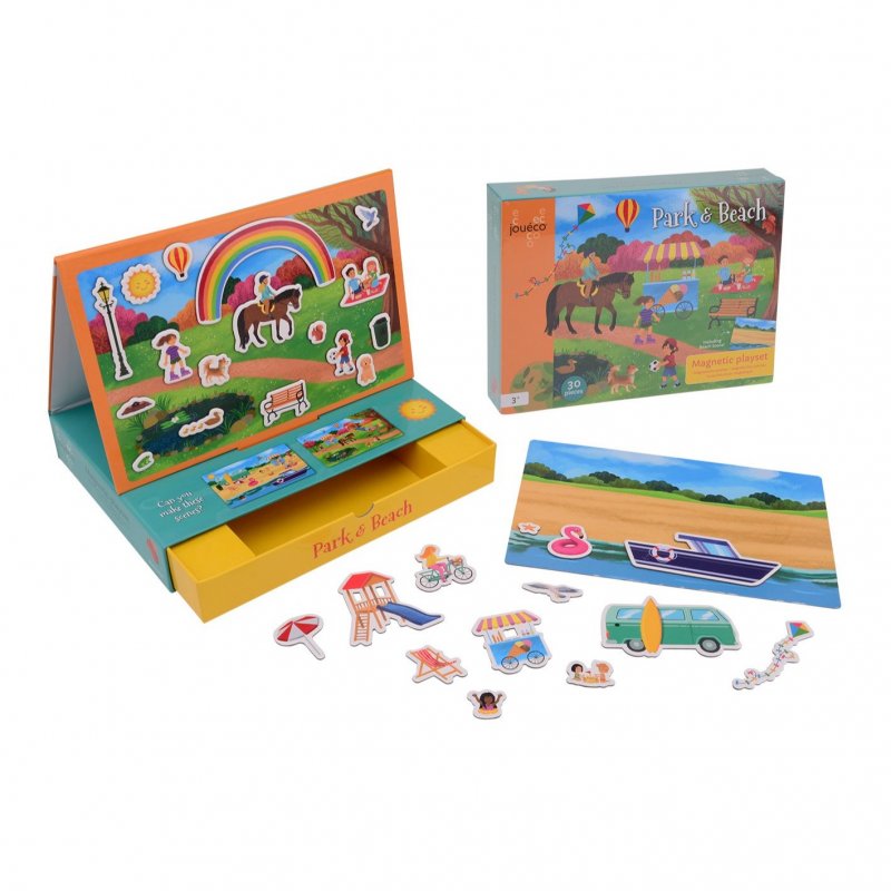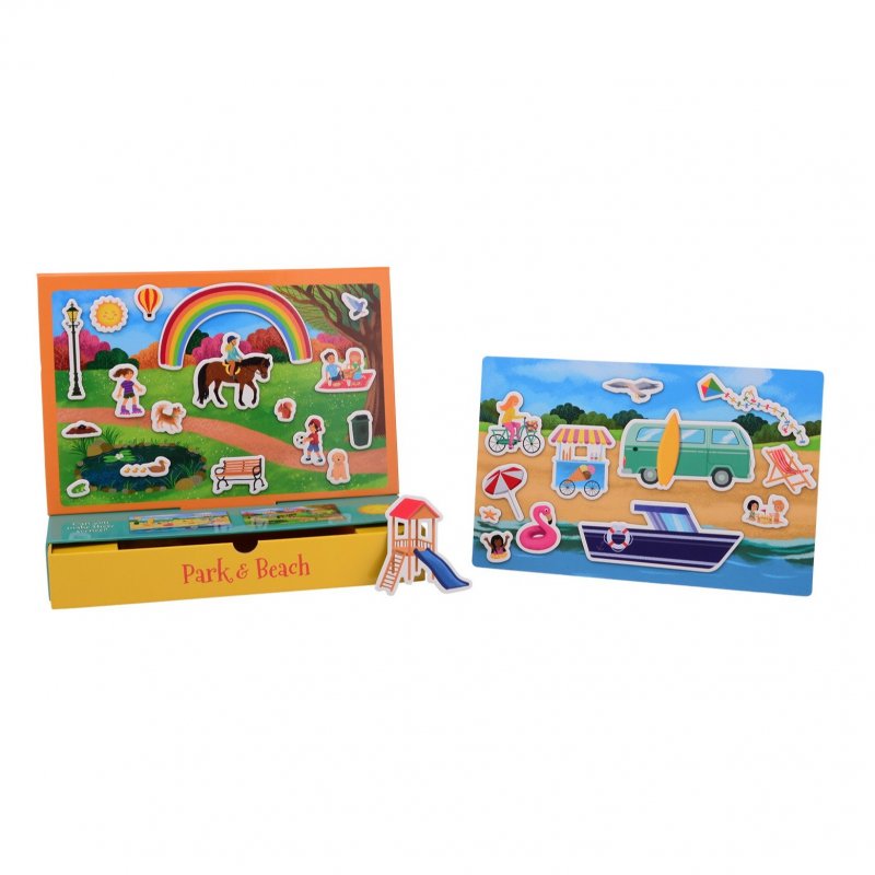 - obsahuje 2 rôzne hracie dosky s motívom parku a pláže