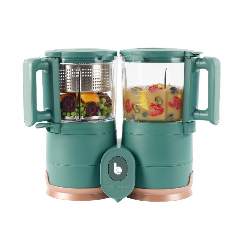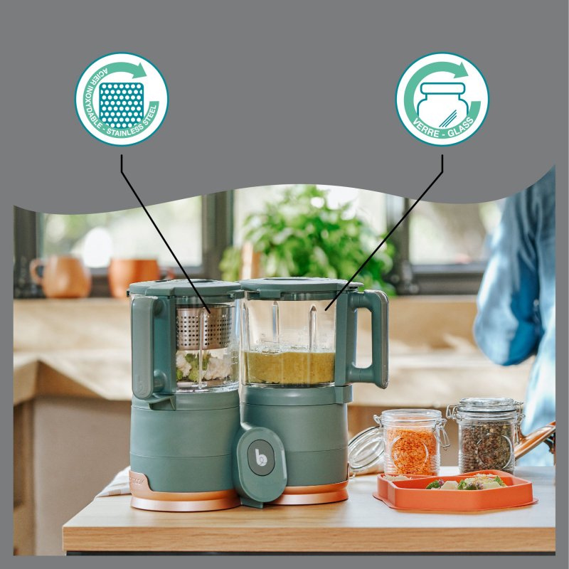Predstavujeme náš prvý kuchynský prístroj pre zdravé jedlá s ekologickým dizajnom: Nutribaby Glass! So svojimi sklenenými varnými a mixovacími miskami a nerezovým košom je tento eko-designovaný prístroj ideálny pre všetky fázy vývoja dieťaťa. Nutribaby Glass má celkovú kapacitu 1500ml (1000ml na varenie a 500ml na mixovanie). Je možné v ňom variť a mixovať súčasne! Vhodný na varenie všetkých druhov potravín: ovocie a zeleninu, mäso, ryby, vajcia, obilniny, atď. Nutribaby Glas = úspora času pre nových rodičov, ktorí chcú dopriať svojim deťom zdravé a chutné domáce jedlá!