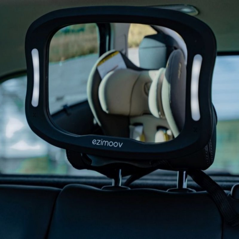 - veľké zrkadlo s integrovaným LED osvetlením, ktoré umožňuje sledovať dieťatko aj počas nočných jázd v aute