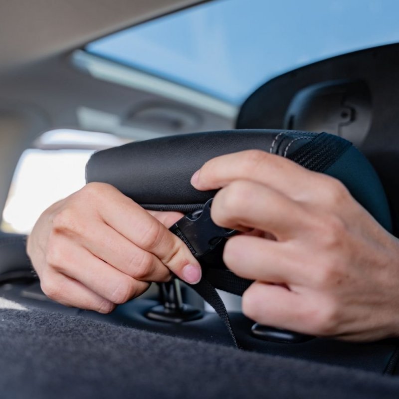 - ľahko sa inštaluje pomocou popruhov so sponou na opierku hlavy zadného autosedadla