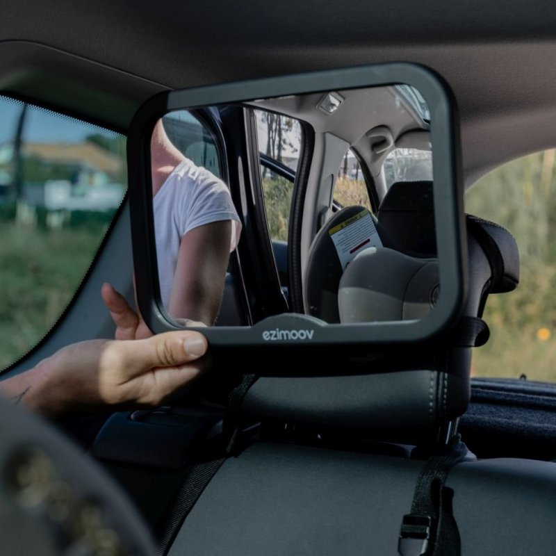 - extra veľké, mierne zaoblené zrkadlo pre panoramatický výhľad na dieťatko sediace v autosedačke proti smeru jazdy