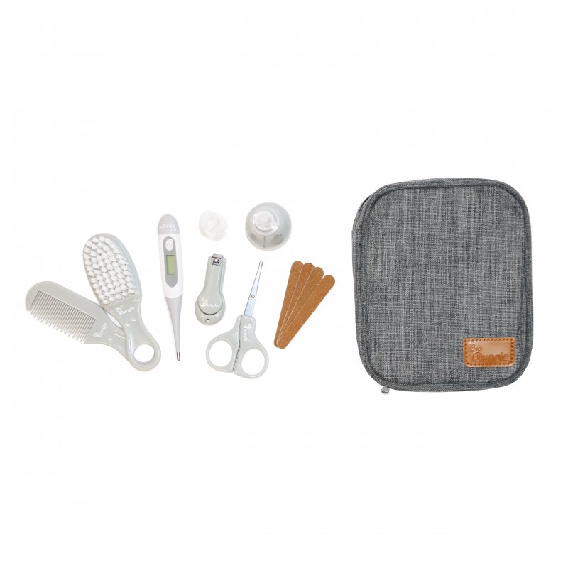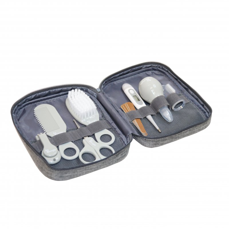 - obsahuje: pilníky, nožnice a klieštiky na nechty, silikónovú kefku na zúbky, hrebeň a kefu na vlasy, digitálny flexibilný teplomer, nosnú odsávačku