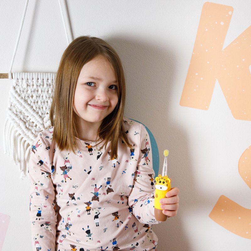 - čistiaca hlava s mäkkými štetinkami je vyrobená z DuPont materiálu, ktorý je pevný a odolný proti opotrebeniu, má zaoblené konca, chráni ďasná dieťaťa a účinne čistí zuby