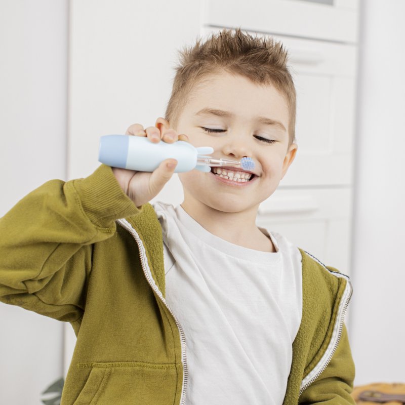 - čistiaca hlava s mäkkými štetinkami je vyrobená z DuPont materiálu, ktorý je pevný a odolný proti opotrebeniu, má zaoblené konca, chráni ďasná dieťaťa a účinne čistí zuby