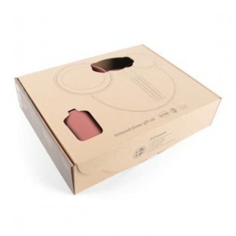 Jedálenská darčeková súprava z recyklovateľného bioplastu. Pozostáva zo 7 kusov riadu v jemných prírodných farbách. Taniere sa dajú použiť na rozdelenie jedla podľa druhu, farby alebo veľkosti. Dve najmenšie priehradky taniera, ak sa nepoužívajú na jedlo, dokonale držia misku a pohár, takže tanier možno použiť ako podnos na spoločné prenášanie jedla a nápojov. Vďaka svojim multifunkčným častiam a mnohým možnostiam je táto súprava vhodná aj pre najmenšie deti!