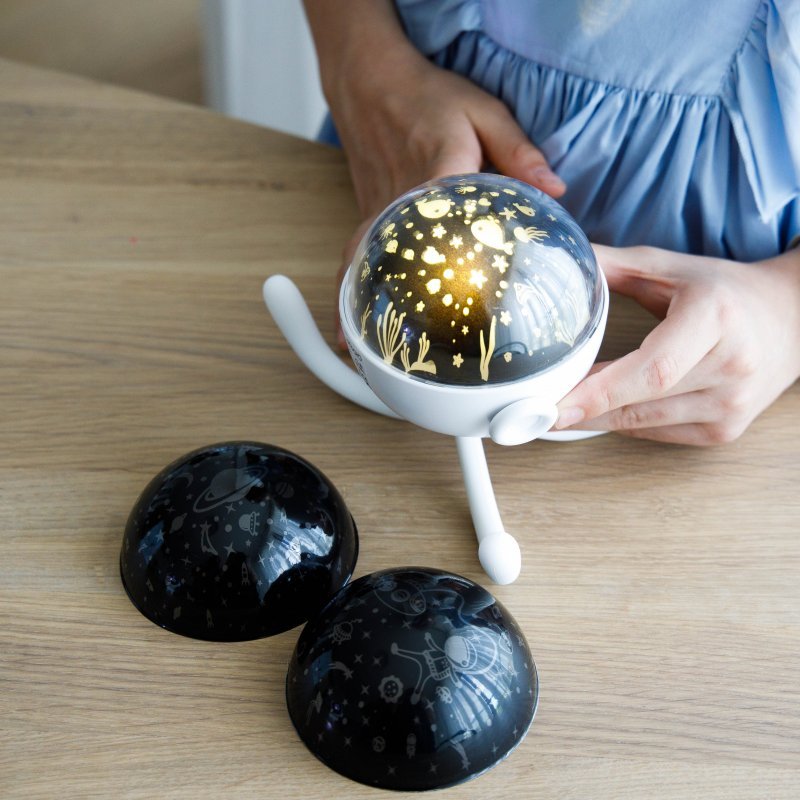 Projektor GIOstar Octopus je ideálnym sprievodcom na ceste dieťatka do sveta snov a objavov, prenáša magický vesmír či tajuplné hlbiny oceánu priamo do detskej izbičky. Rozvíja detskú predstavivosť a zvedavosť už od prvých okamihov života. Vďaka planétkam, hviezdam a tajomným morským priestorom sa dieťatko vydá na dobrodružstvo bez toho, aby opustilo bezpečie a pokoj svojej postieľky! Projektor GIOstar Octopus nielenže rozvíja zmysel pre zvedavosť, ale tiež pomáha naučiť deti relaxovať a lepšie zaspávať.