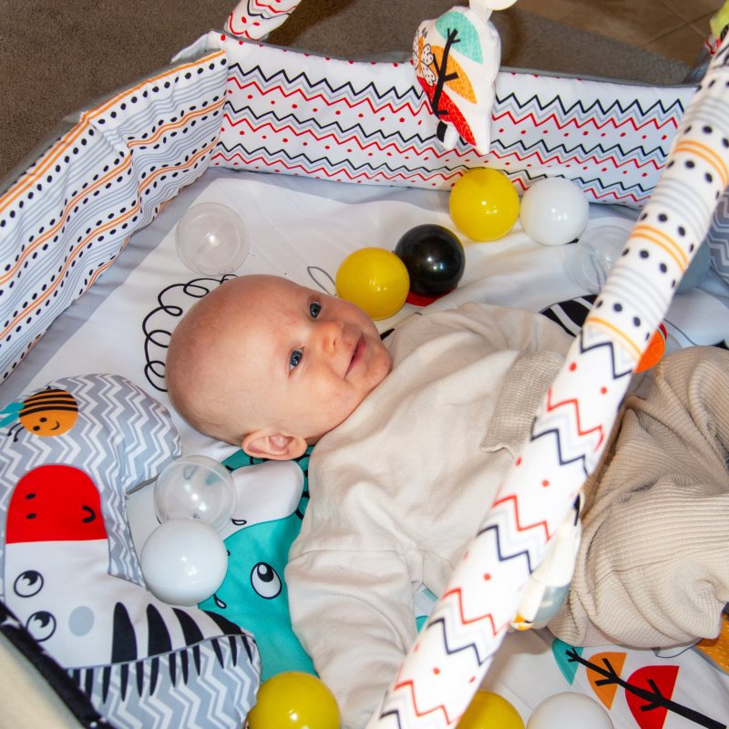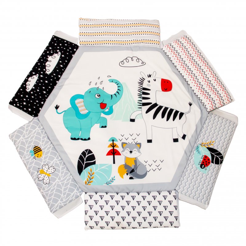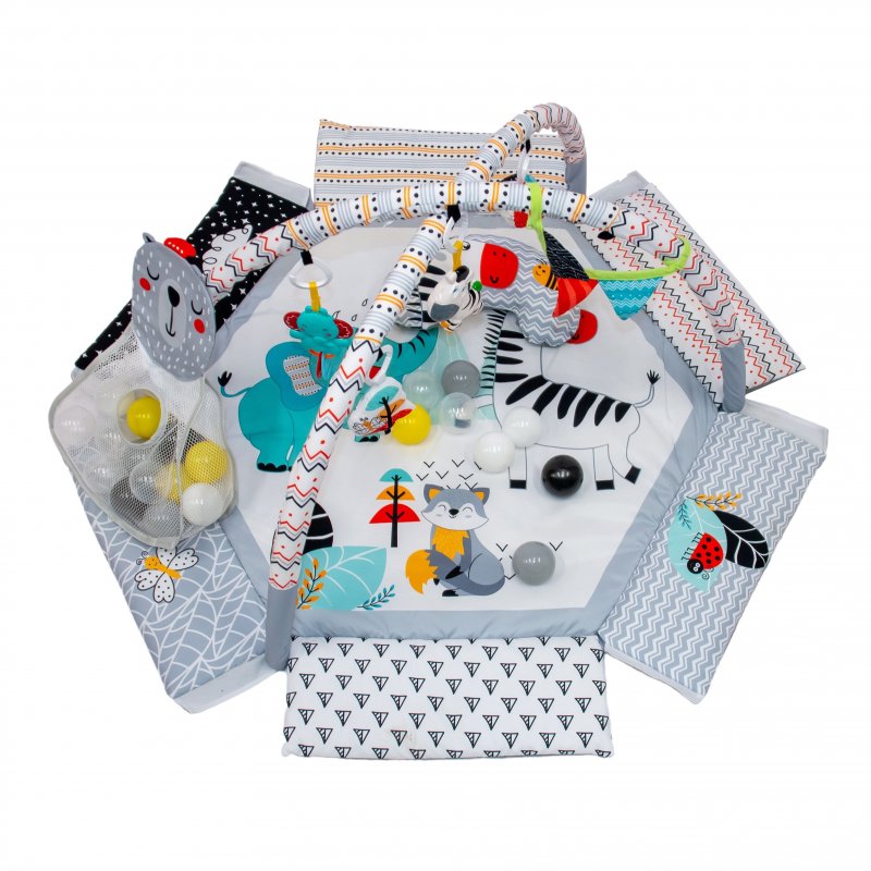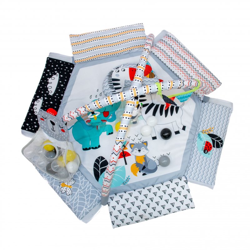 - hracia deka v jemnom dizajne, ktorú je možné počas chvíľky premeniť na bazénik (pomocou suchých zipsov)