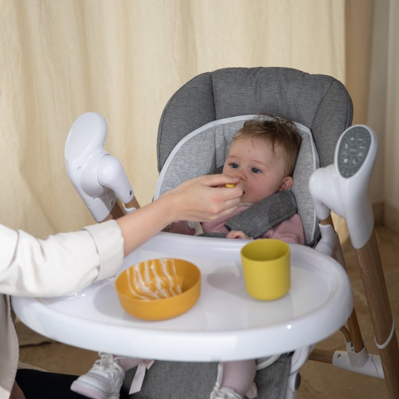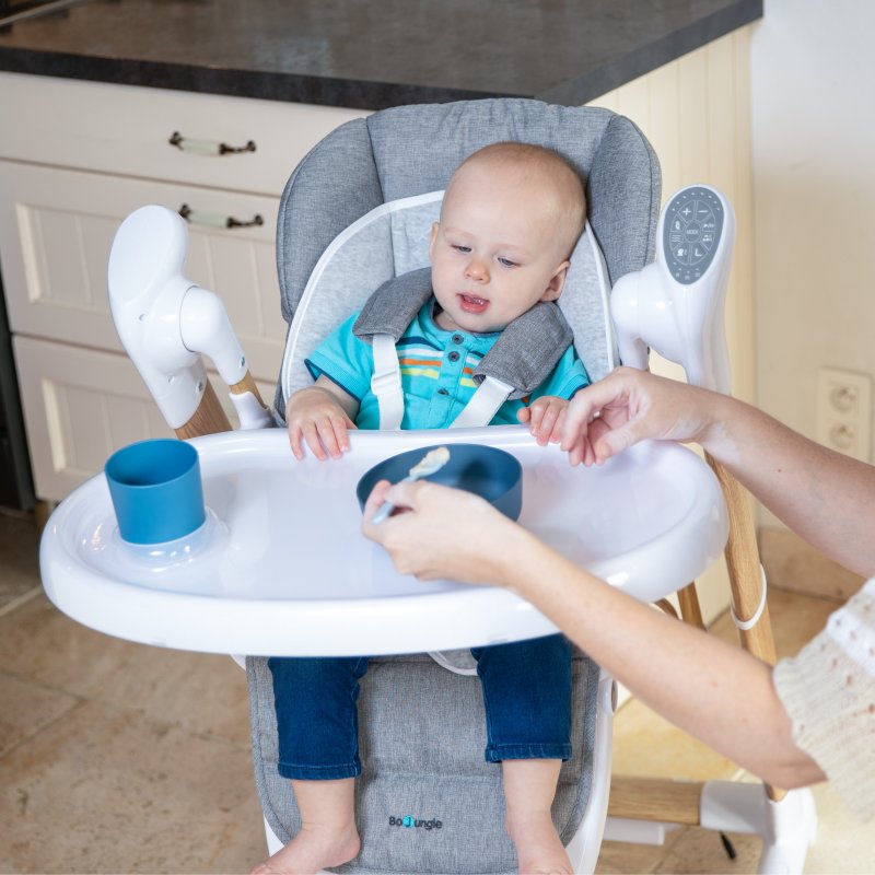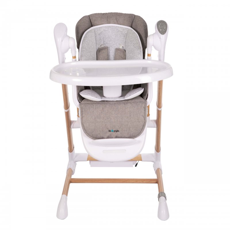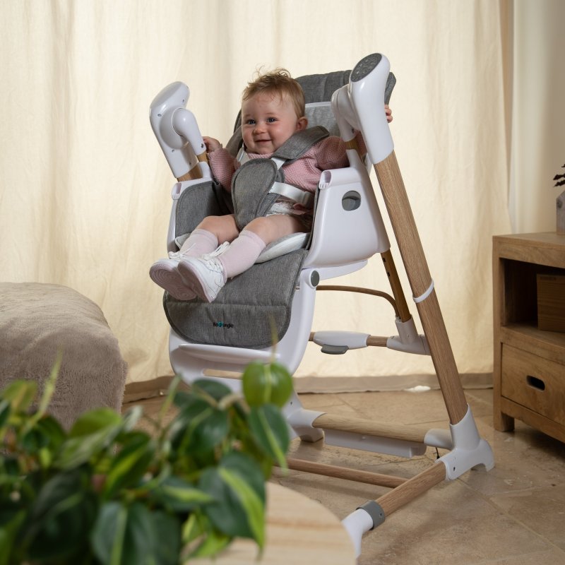 B-Swinging High Chair Pure 2v1 je unikátna jedálenská stolička novej generácie, ktorá prináša viac než len pohodlné sedenie! Táto inovatívna stolička je multifunkčná - slúži nielen ako pohodlná jedálenská stolička, ale aj ako zábavná hojdačka, ktorú si dieťatko rýchlo zamiluje. Stolička prehráva 12 zábavných melódií a zvukov prírody, ktoré dieťatko upokojí a zabaví, zatiaľ čo mamička zvládne pripraviť napríklad rýchly obed alebo si užije zaslúžený odpočinok. Všetky funkcie (rýchlosti hojdania, časovač, ...) je možné ovládať prostredníctvom prehľadnej aplikácie v mobilnom telefóne. Ako ľahké a pohodlné!