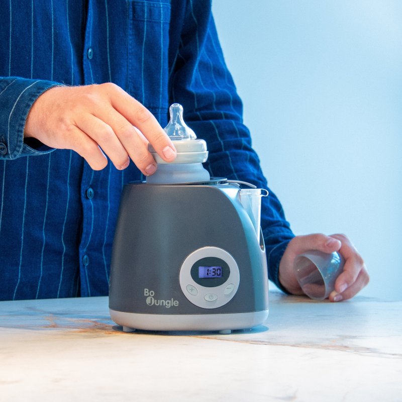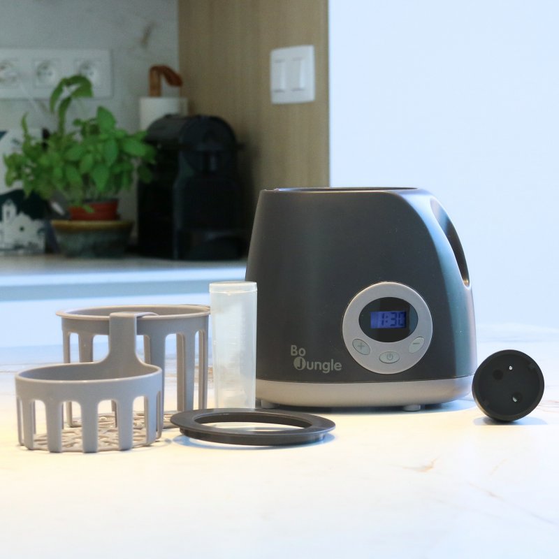 Kŕmenie bábätka už nemusí byť obmedzené iba na domov! Ohrievač Car&Home môže byť praktickým pomocníkom aj kdekoľvek na cestách autom. Tento prístroj je navrhnutý tak, aby umožnil zdravý spôsob ohrevu fľaše, a to počas veľmi krátkej doby. Je bezpečný, rýchly a efektívny - jednoducho sa vloží fľaštička alebo príkrm do priloženého košíka a uzavrie sa redukčným krúžkom. Tým sa zaistí, že horúca para zostane okolo fľaše a urýchli sa doba ohrevu. Potom sa na digitálnom displeji nastaví požadovaný čas ohrevu, ktorý sa môže pohybovať od 1 do 12 minút. Hneď ako čas vyprší alebo ak dôjde voda, spustí sa inteligentný alarm a ohrievač sa automaticky vypne. Po ohriatí je veľmi dôležité fľaštičku dobre pretrepať, aby sa teplo rovnomerne rozšírilo. Pozn.: Nadmerné množstvo vody v nádrži a/alebo fľaši môže spomaliť proces ohrevu.