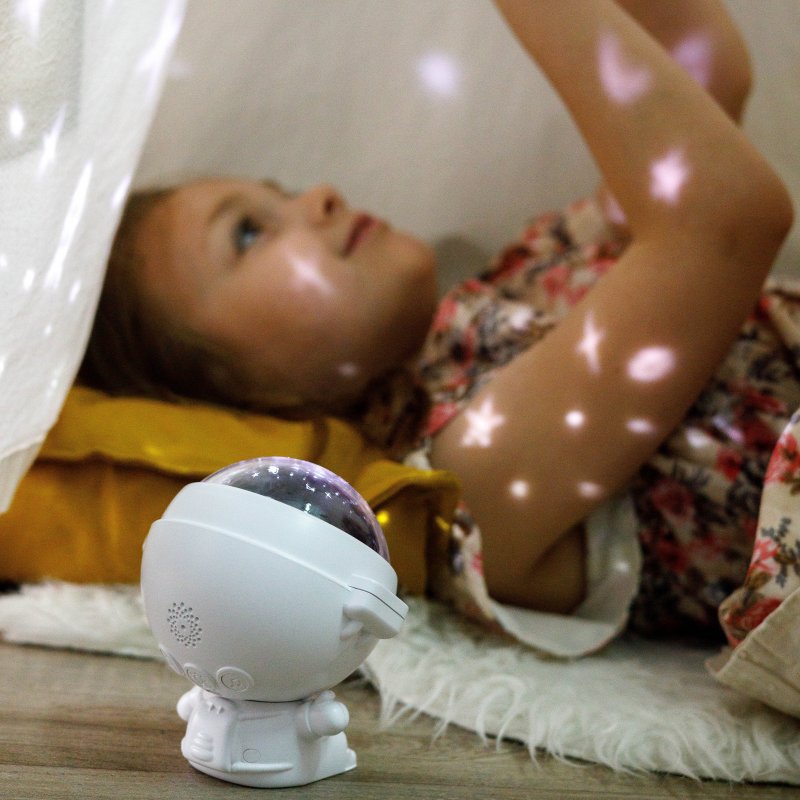 Projektor GIOstar Astronaut je ideálnym sprievodcom na ceste dieťatka do sveta snov a objavov, prenáša magický vesmír či tajuplné hlbiny oceánu priamo do detskej izbičky. Rozvíja detskú predstavivosť a zvedavosť už od prvých okamihov života. Vďaka planétkam, hviezdam a tajomným morským priestorom sa dieťatko vydá na dobrodružstvo bez toho, aby opustilo bezpečie a pokoj svojej postieľky! Projektor GIOstar Astronaut nielenže rozvíja zmysel pre zvedavosť, ale taktiež pomáha naučiť deti relaxovať a lepšie zaspávať.