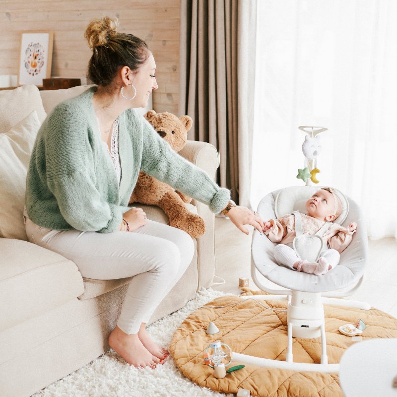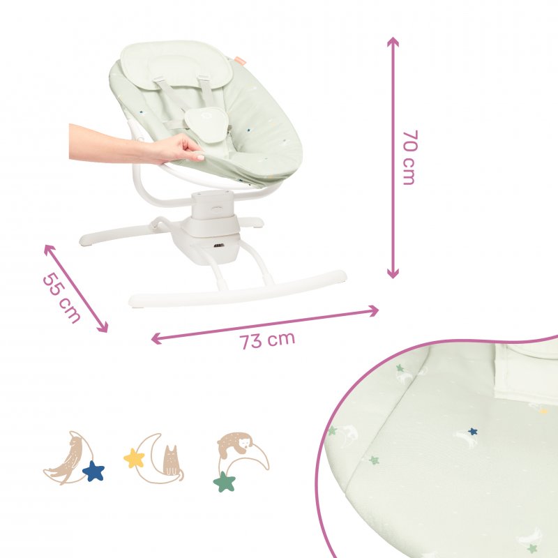 - pohodlná motorizovaná hojdačka s prirodzenými pohybmi paží rodičov